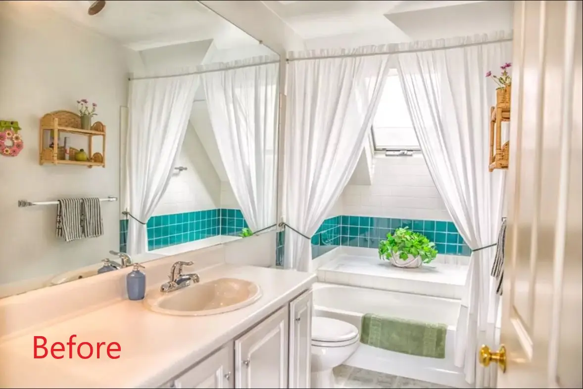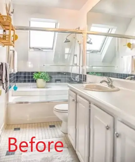 - Flooring & Ventilation: Merola Picasso Mink tile for bathroom floor and Panasonic Whisper Ceiling vent/light unit.