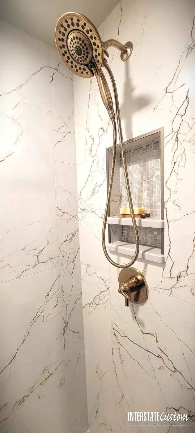 - Estate Carmel Polished tile (24″ x 48″) for shower walls