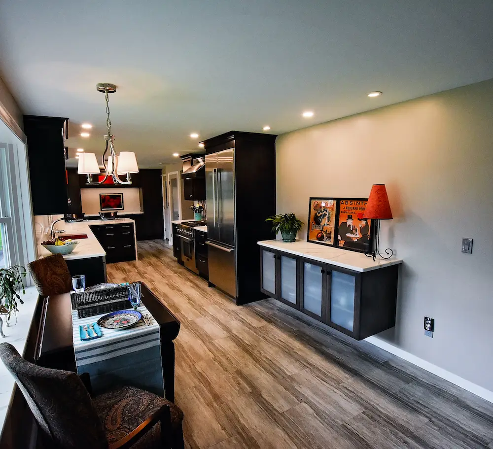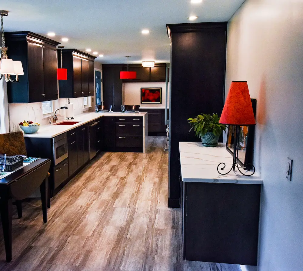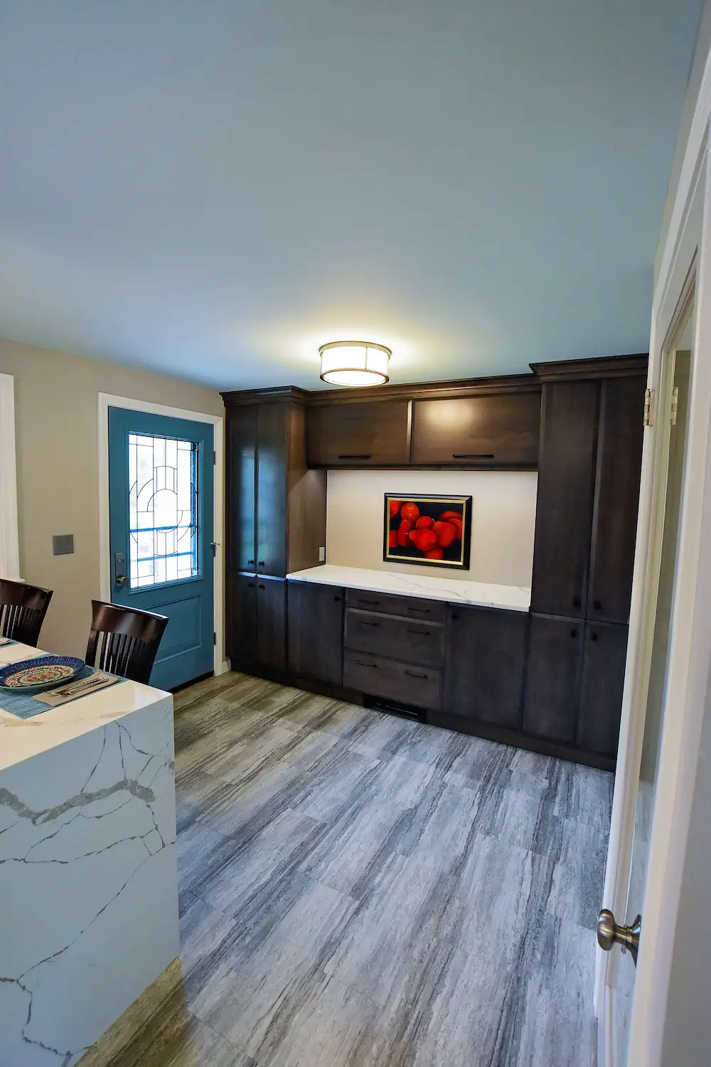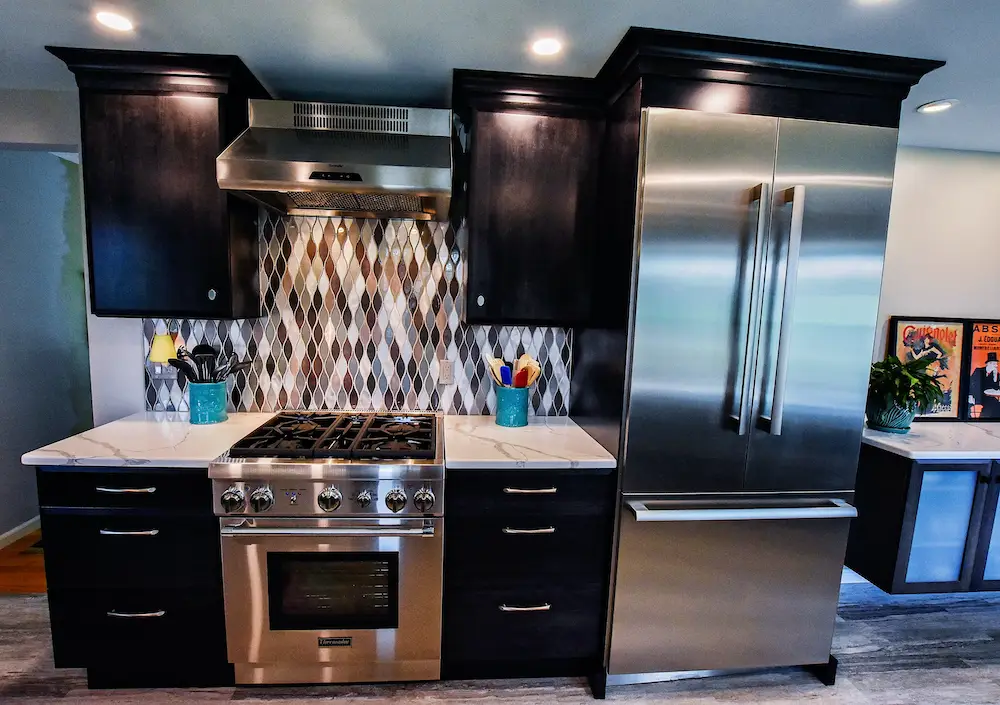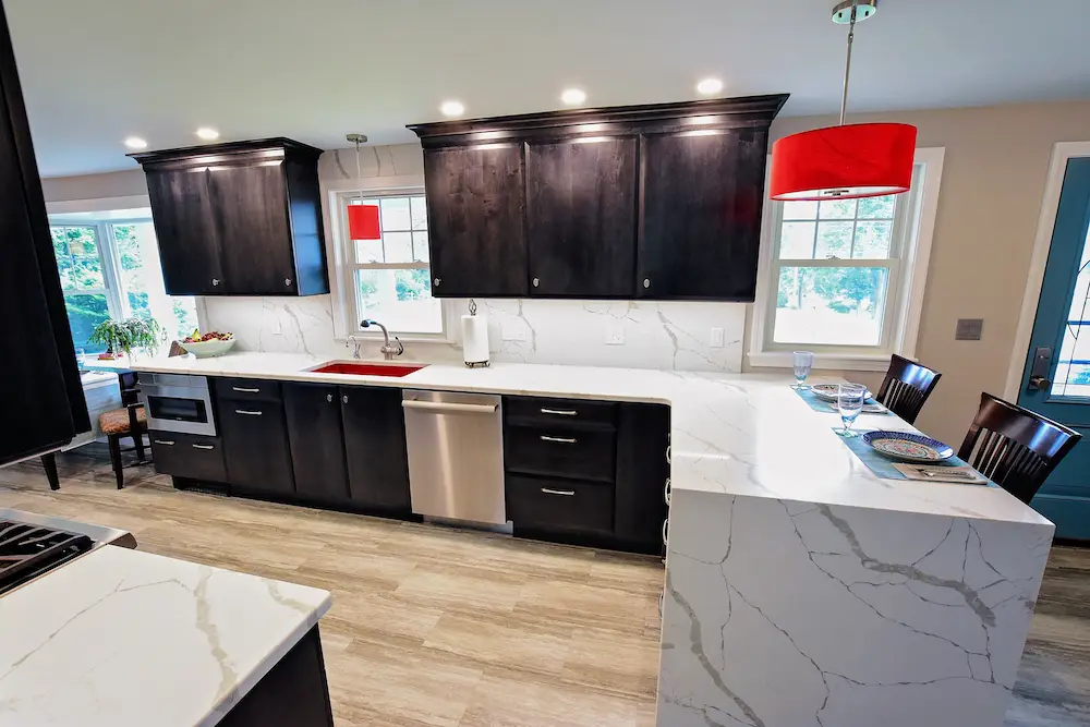 This modern kitchen remodel in South Hadley perfectly balances cutting-edge design with everyday functionality, resulting in a space that is both luxurious and practical.