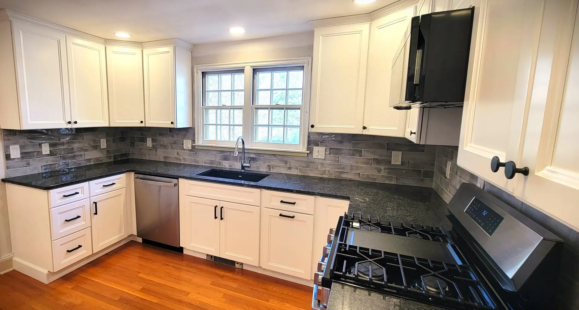 This kitchen remodeling project in Longmeadow, MA showcases a complete transformation from a dated layout to a bright, highly functional space designed for modern living. This project highlights our expertise in custom kitchen cabinet installation, delivering both improved storage and a clean, timeless aesthetic.