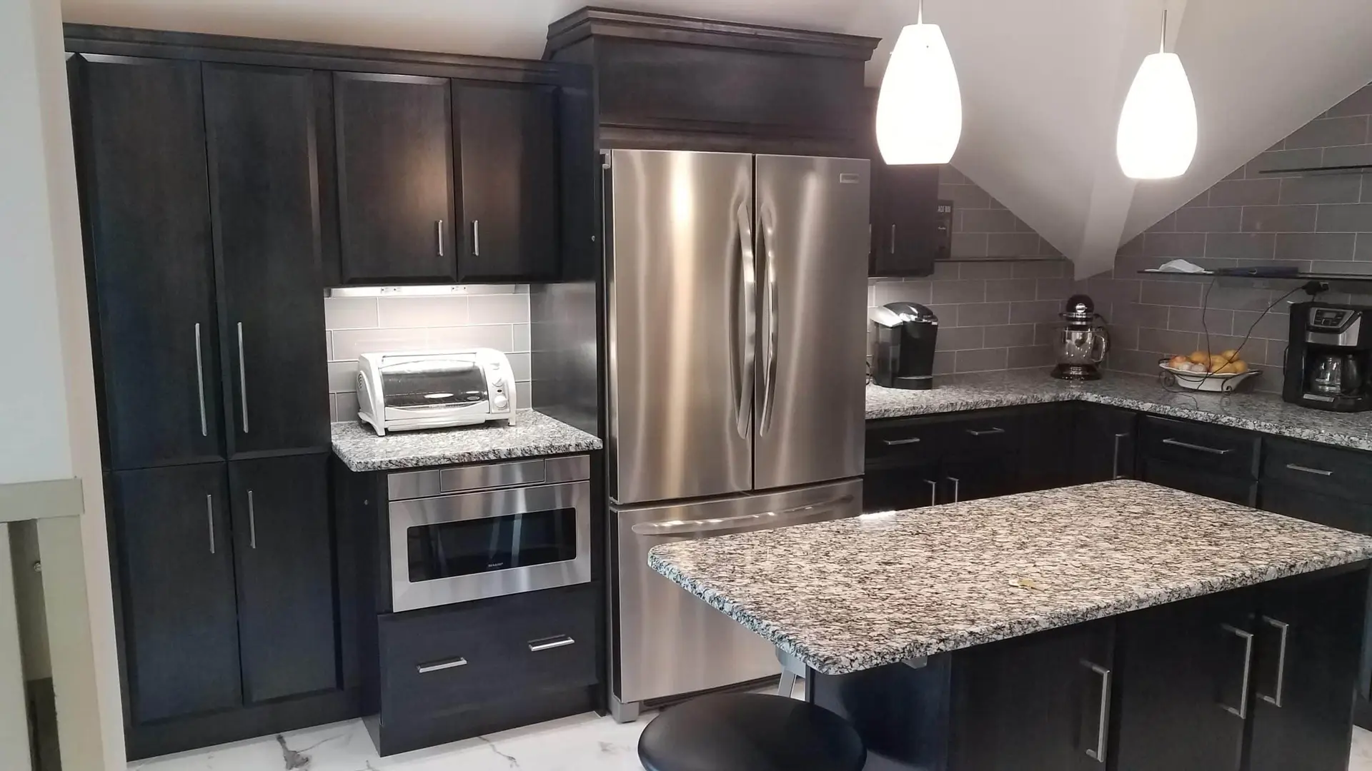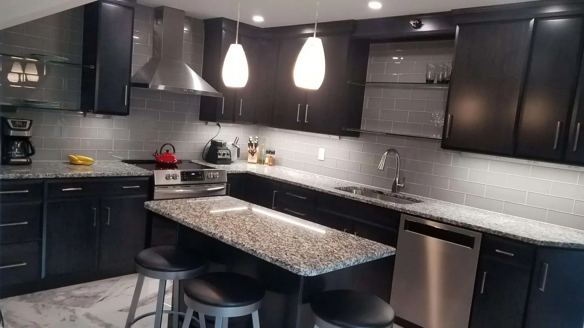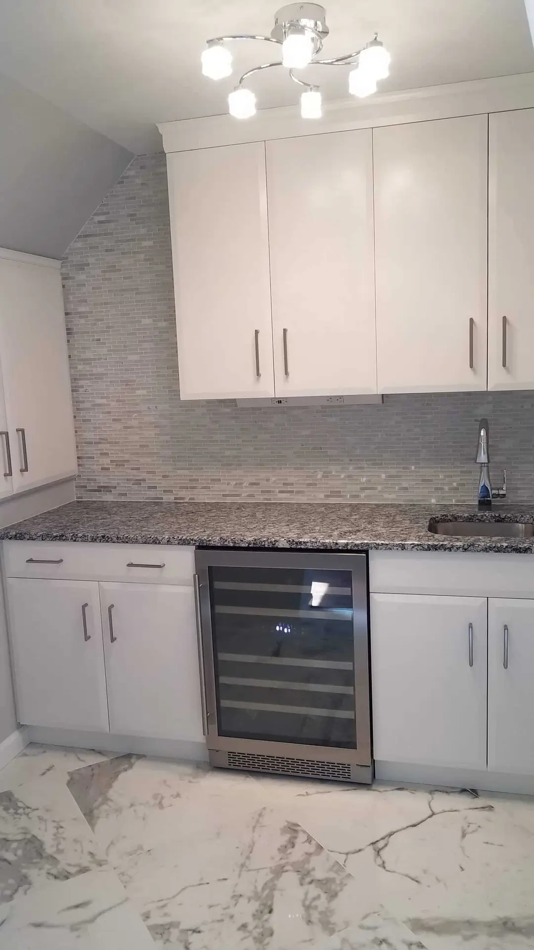 In 2019, we completed a modern kitchen remodel in Springfield, MA, that features striking two-tone cabinetry, elegant granite countertops, and sleek finishes. This contemporary kitchen design embraces both function and style, offering a modern space that is perfect for everyday living.