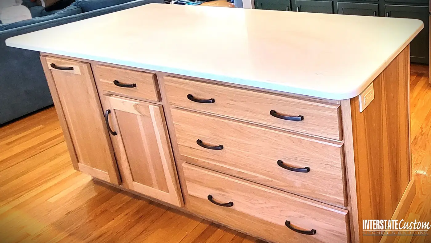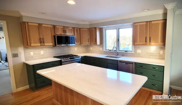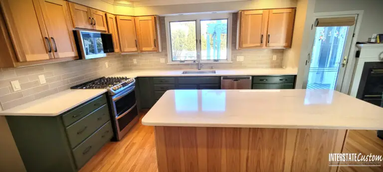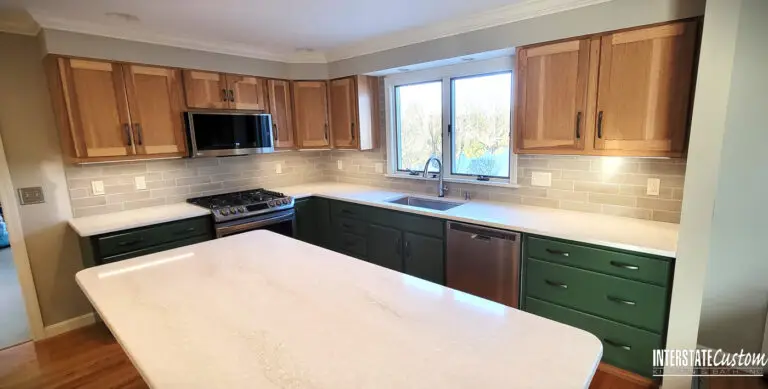 This kitchen refacing project showcases the perfect balance between classic wood tones and contemporary painted accents, resulting in a space that feels fresh, functional, and beautifully customized.
