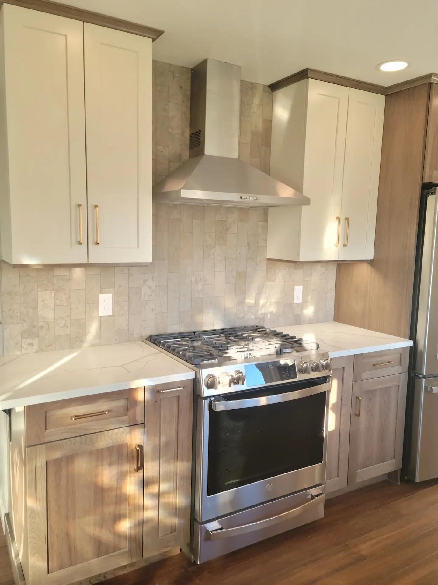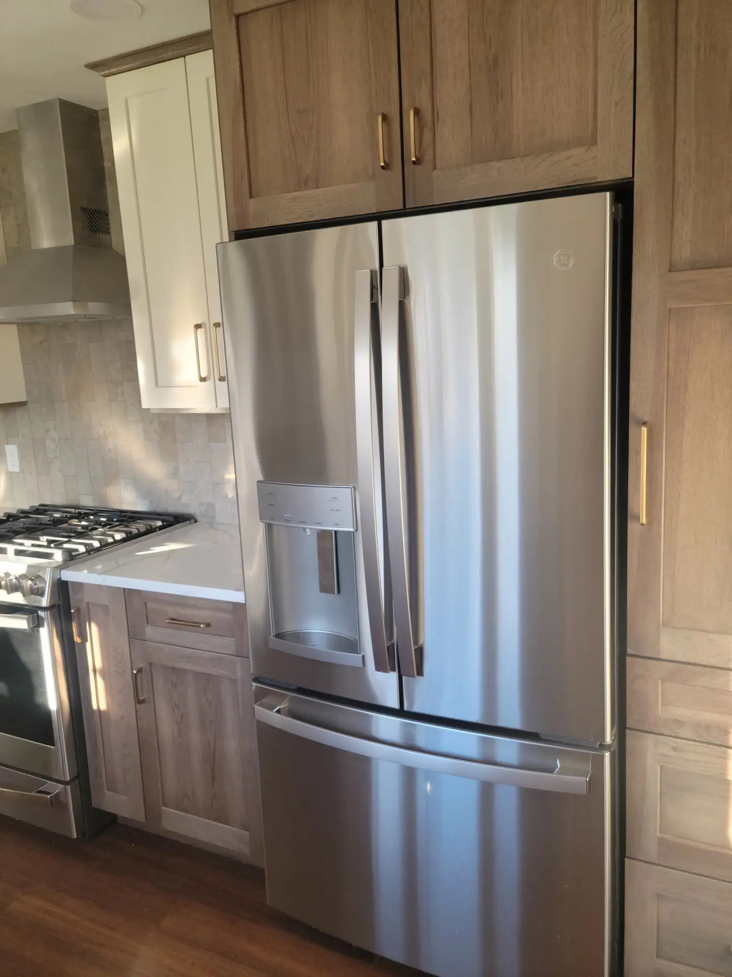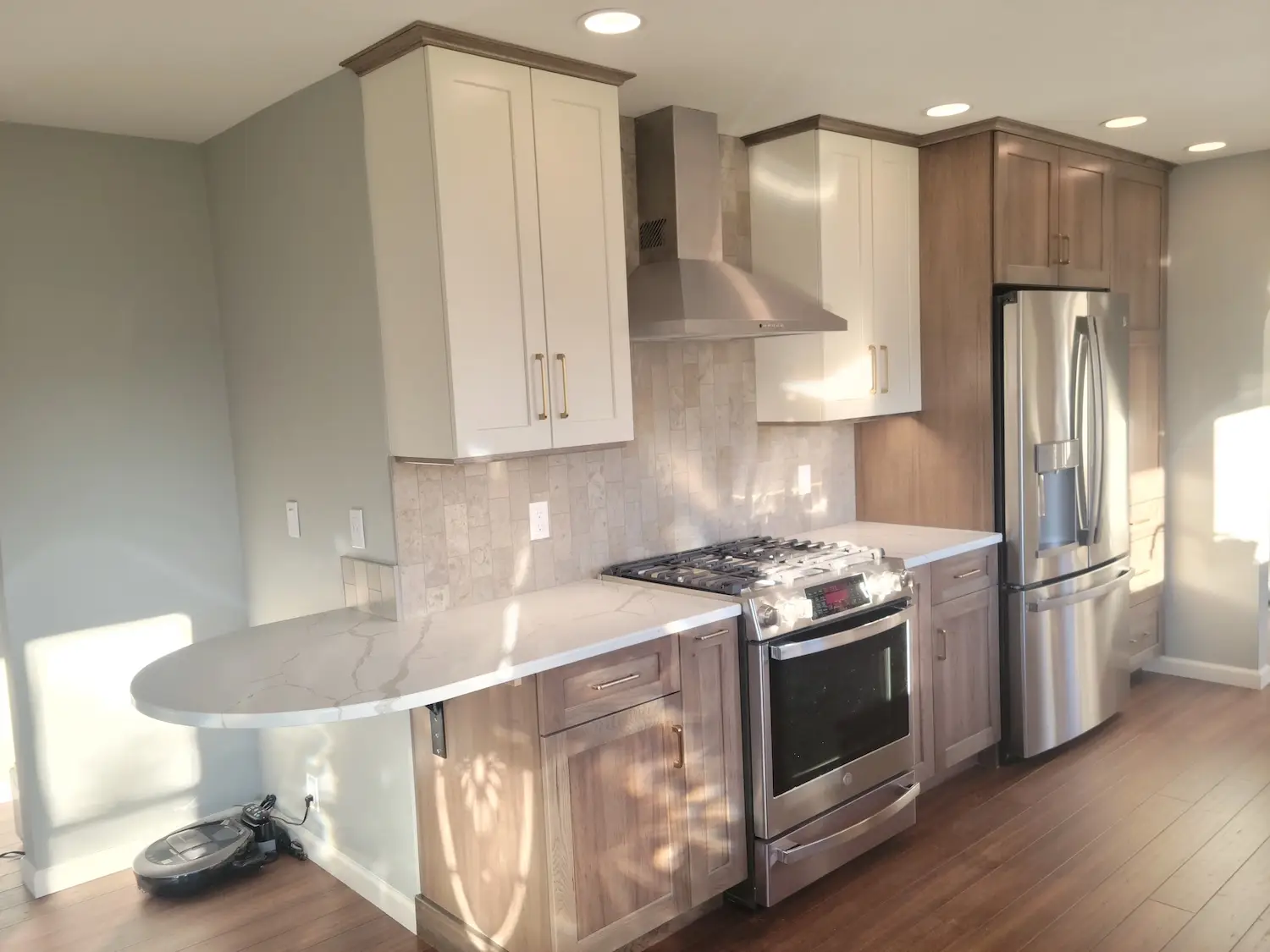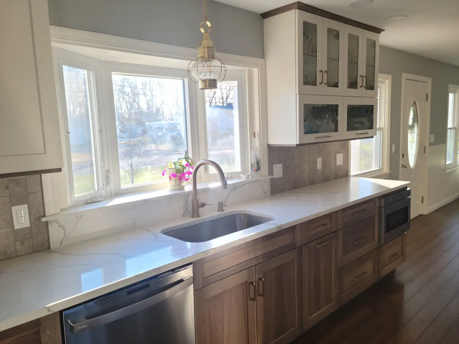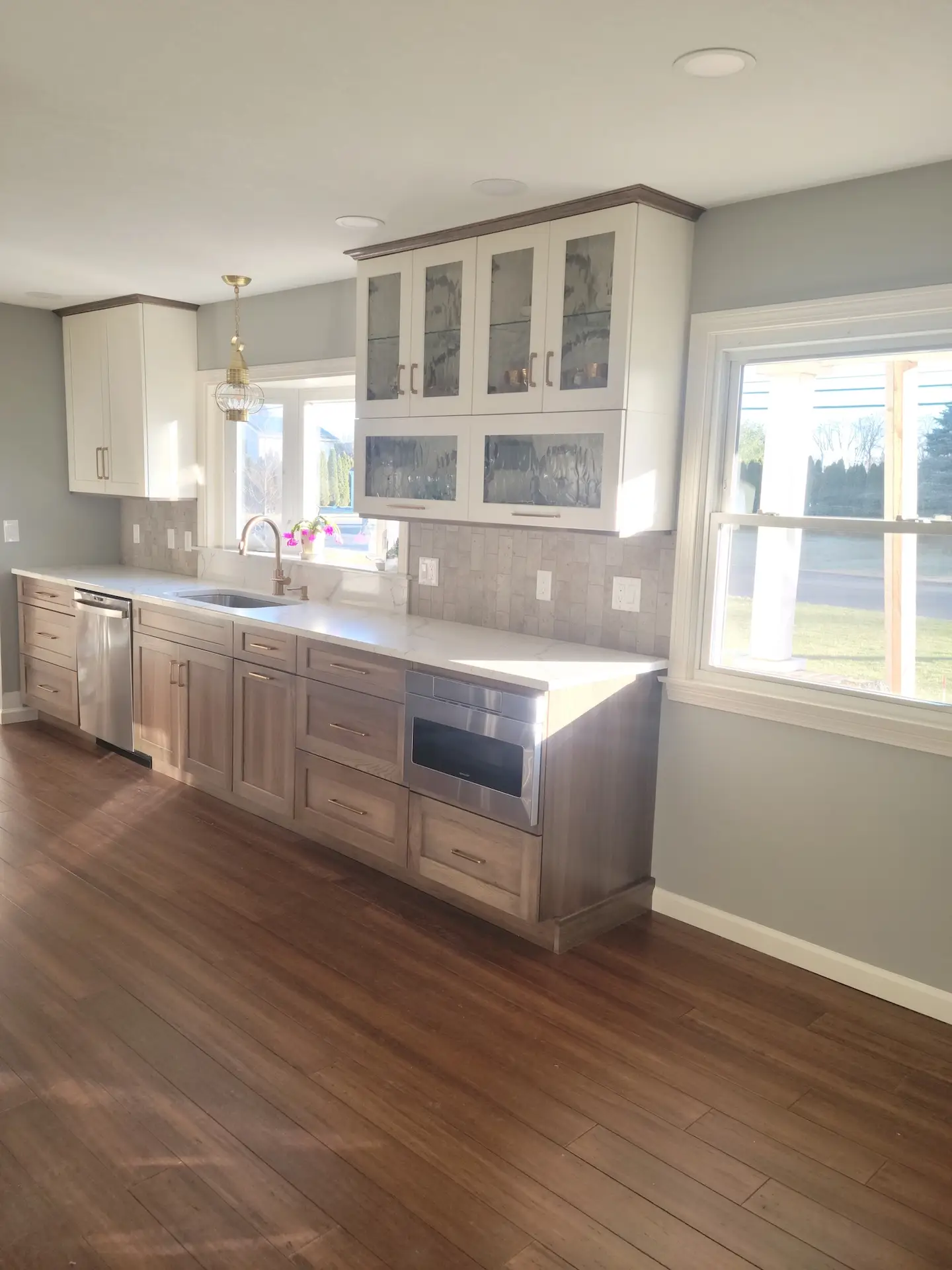 In 2021, we completed a kitchen remodel in Agawam, MA, that embodies modern elegance with a captivating two-tone design. The space blends classic and natural elements, creating a refined kitchen that is both stylish and functional.